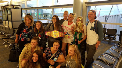 Funny...Getting off the plane in Vegas we ran into the World hot dog eating champion. Kimball's face says it all!